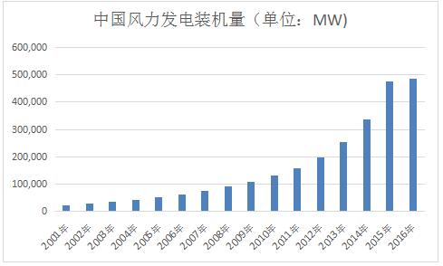 風(fēng)能是一種清潔而穩(wěn)定的新能源,在環(huán)境污染和溫室氣體排放日益嚴(yán)重的今天,風(fēng)力發(fā)電作為全球公認(rèn)可以有效減緩氣候變化、提高能源安全、促進(jìn)低碳經(jīng)濟(jì)增長(zhǎng)的方案,得到各國(guó)政府、機(jī)構(gòu)和企業(yè)等的高度關(guān)注。此外,由于風(fēng)電技術(shù)相對(duì)成熟,且具有更高的成本效益和資源有效性,因此,風(fēng)電也成為近年來(lái)世界上增長(zhǎng)最快的能源之一。目前,我國(guó)已經(jīng)成為全球風(fēng)力發(fā)電規(guī)模最大、增長(zhǎng)最快的市場(chǎng)。根據(jù)全球風(fēng)能理事會(huì)統(tǒng)計(jì)數(shù)據(jù),全球風(fēng)電累計(jì)裝機(jī)容量從截至 2001 年 12 月 31 日的 23,900MW 增至截至 2016 年 12 月 31 日的 486,749MW,年復(fù)合增長(zhǎng)率為 22.25%,而同期我國(guó)風(fēng)電累計(jì)裝機(jī)容量的年復(fù)合增長(zhǎng)率為49.53%,增長(zhǎng)率位居全球第一; 2016 年,我國(guó)新增風(fēng)電裝機(jī)容量 23,328MW(臨時(shí)數(shù)據(jù)),占當(dāng)年全球新增裝機(jī)容量的 42.7%,位居全球第一。