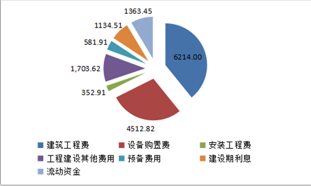 本項(xiàng)目總投資15,863.21萬(wàn)美元,其中,建設(shè)投資金額為13,365.25萬(wàn)美元,建設(shè)期利息1,134.51萬(wàn)美元,流動(dòng)資金1,363.45萬(wàn)美元。