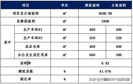 公司根據(jù)實際戰(zhàn)略規(guī)劃,項目建設(shè)總占地面積3600平方米(約5.4畝),主要構(gòu)建物總建筑面積1,800平方米,計容建筑面積3,000平方米(根據(jù)國土資發(fā)[2008]24號《工業(yè)項目建設(shè)用地控制指標(biāo)》規(guī)定,單層建筑高度>8米的按兩層面積計容),容積率0.83,綠化率13.89%。