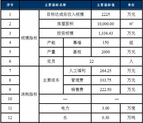 1.2 項(xiàng)目主要經(jīng)濟(jì)指標(biāo)