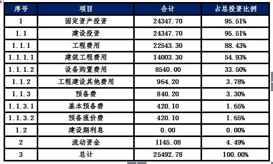 2、項目總投資25492.78萬元,符合當?shù)赝顿Y標準;