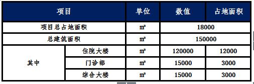 1、一棟住院大樓:占地面積12000㎡,建筑面積120000㎡,十層。