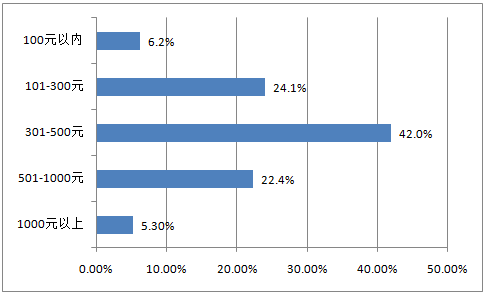 2016年中國(guó)手機(jī)海淘用戶單次海淘金額分布
