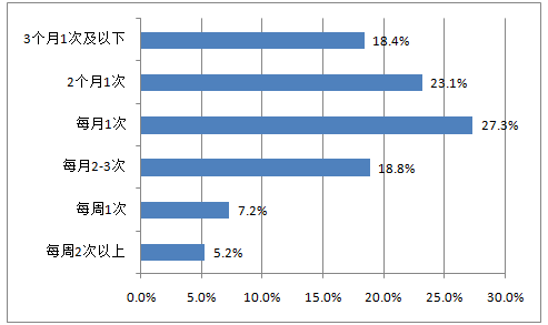 2016年中國(guó)手機(jī)海淘用戶海淘頻率分布