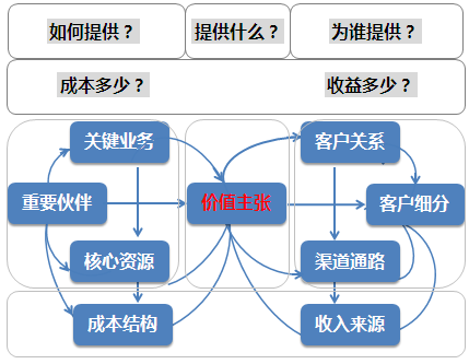 為此,商業(yè)模式一般拆解為九個要素進行分析;其中價值主張統(tǒng)領(lǐng)其他分析,左側(cè)通過關(guān)鍵業(yè)務(wù)、重要伙伴、核心資源,最終分析出成本構(gòu)成;右側(cè)通過客戶細分、客戶關(guān)系、渠道通路等分析,最終分析出收入來源。最后綜合分析,將最終能分析出商業(yè)模式的可行性。企業(yè)通過對商業(yè)模式中各要素的設(shè)計,將能設(shè)計出能帶來最大利潤空間的商業(yè)模式。