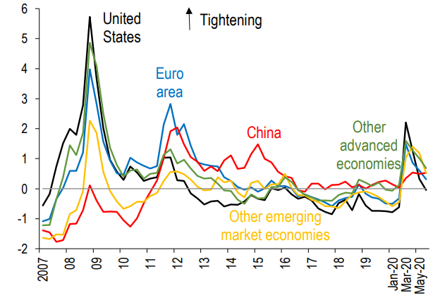 圖1:全球金融條件指數走勢情況(標準差)