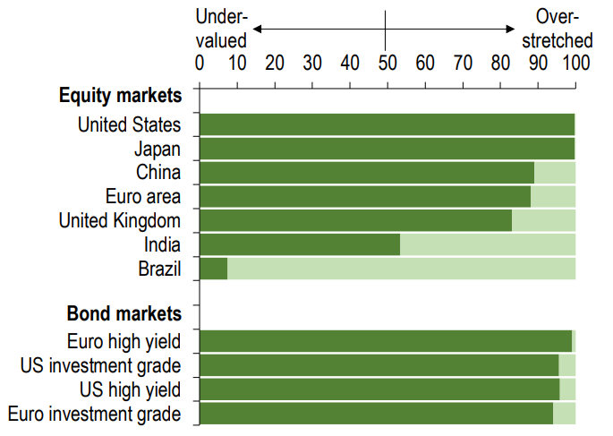 2、全球金融穩(wěn)定最新進展一覽:全球金融環(huán)境寬松、多數區(qū)域資產估值大幅背離基本面