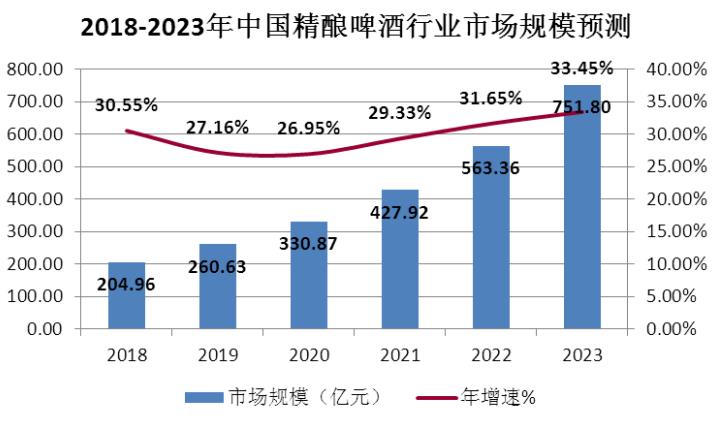 未來幾年中國精釀啤酒行業(yè)仍將保持高速度增長,到2023年將達(dá)到751.8億元人民幣。
