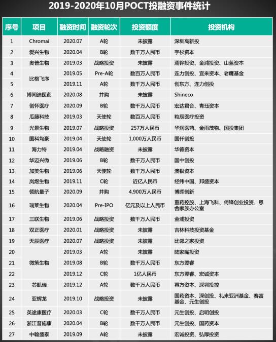 77億市場規(guī)模,41家投資機構(gòu)入場,2020年4家企業(yè)闖關(guān)科創(chuàng)板,POCT風(fēng)頭正勁,無疑是IVD領(lǐng)域最熱門的賽道之一。國內(nèi)外玩家群雄逐鹿,細分領(lǐng)域需求涌現(xiàn),為POCT帶來了哪些新契機?2020年P(guān)OCT創(chuàng)業(yè)公司又有哪些機會點呢?...