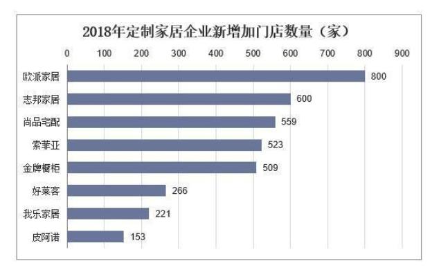 從總的門(mén)店凈增加數(shù)量來(lái)看,2018年歐派家居、志邦家居、尚品宅配、索菲亞、金牌櫥柜、好萊客、我樂(lè)家居、皮阿諾分別增長(zhǎng)800家、600家、559家、523家、509家、266家、221家、153家門(mén)店。志邦、金牌的開(kāi)店數(shù)較多,主要是新增的衣柜品類(lèi)經(jīng)銷(xiāo)商增加加多所致。