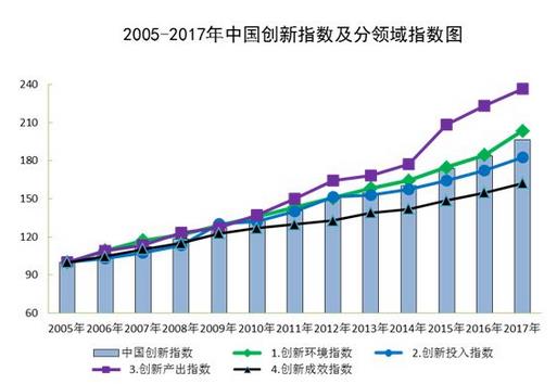 據(jù)國(guó)家統(tǒng)計(jì)局網(wǎng)站消息,國(guó)家統(tǒng)計(jì)局社科文司《中國(guó)創(chuàng)新指數(shù)研究》課題組測(cè)算,2017年中國(guó)創(chuàng)新指數(shù)為196.3,比上年增長(zhǎng)6.8%。測(cè)算結(jié)果表明,2017年,我國(guó)創(chuàng)新環(huán)境進(jìn)一步優(yōu)化,創(chuàng)新投入力度繼續(xù)加大,創(chuàng)新產(chǎn)出持續(xù)提升,創(chuàng)新成效穩(wěn)步增強(qiáng),創(chuàng)新能力向...