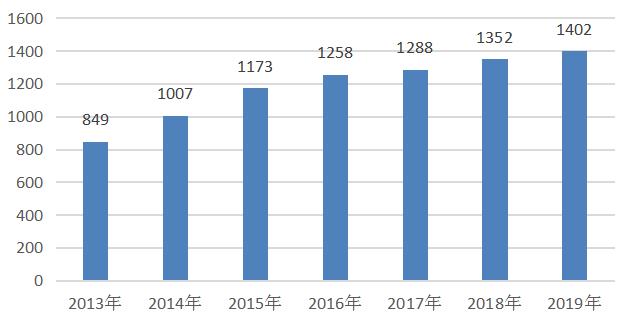 中金普華發(fā)布的《2019-2025年中國塑料粒子(顆粒)行業(yè)專項(xiàng)調(diào)研分析及投資戰(zhàn)略預(yù)測報(bào)告》指出:近幾年,我國再生塑料顆粒行業(yè)產(chǎn)量快速增長,從2013年的849萬噸增長到2019年的1402萬噸,近幾年我國再生塑料顆粒行業(yè)產(chǎn)量情況如下圖所示: