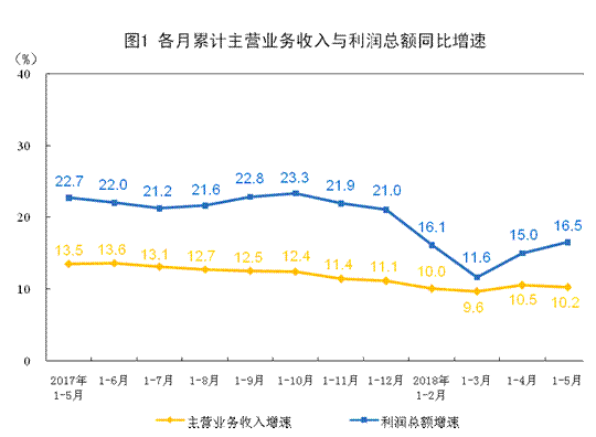 1-5月份,全國規(guī)模以上工業(yè)企業(yè)實現(xiàn)利潤總額27298.3億元,同比增長16.5%,增速比1-4月份加快1.5個百分點。