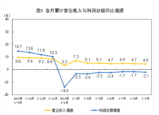 1—9月份,全國(guó)規(guī)模以上工業(yè)企業(yè)實(shí)現(xiàn)利潤(rùn)總額45933.5億元,同比下降2.1%(按可比口徑計(jì)算,考慮統(tǒng)計(jì)制度規(guī)定的口徑調(diào)整、統(tǒng)計(jì)執(zhí)法增強(qiáng)、剔除重復(fù)數(shù)據(jù)、企業(yè)改革剝離、四經(jīng)普單位清查等因素影響,詳見(jiàn)附注四),降幅比1—8月份擴(kuò)大0.4個(gè)百分點(diǎn)。...