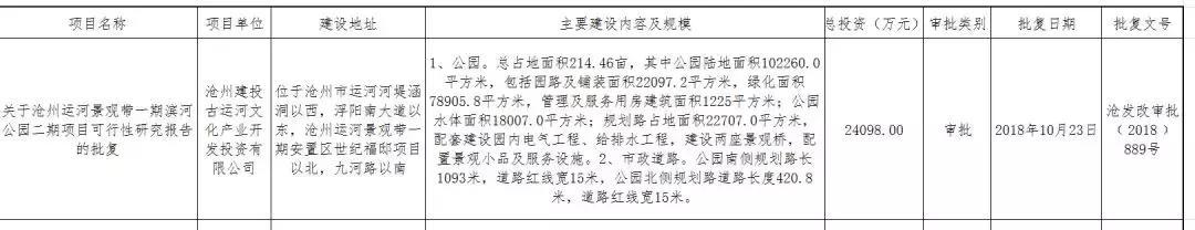 滄州市發(fā)改委發(fā)布《關(guān)于滄州運(yùn)河景觀帶一期濱河公園二期項(xiàng)目可行性研究報(bào)告的批復(fù)》。