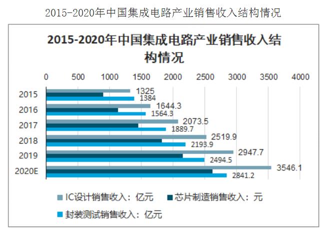 2019年我國IC設(shè)計(jì)產(chǎn)業(yè)規(guī)模為2947.7億元,芯片制造產(chǎn)業(yè)規(guī)模2149.1億元,封裝測(cè)試產(chǎn)業(yè)規(guī)模則為2494.5億元。預(yù)測(cè)2020年我國IC設(shè)計(jì)、芯片制造封裝測(cè)試產(chǎn)業(yè)規(guī)模分別達(dá)到3546.1億元、2623.5億元以及2841.2億元。